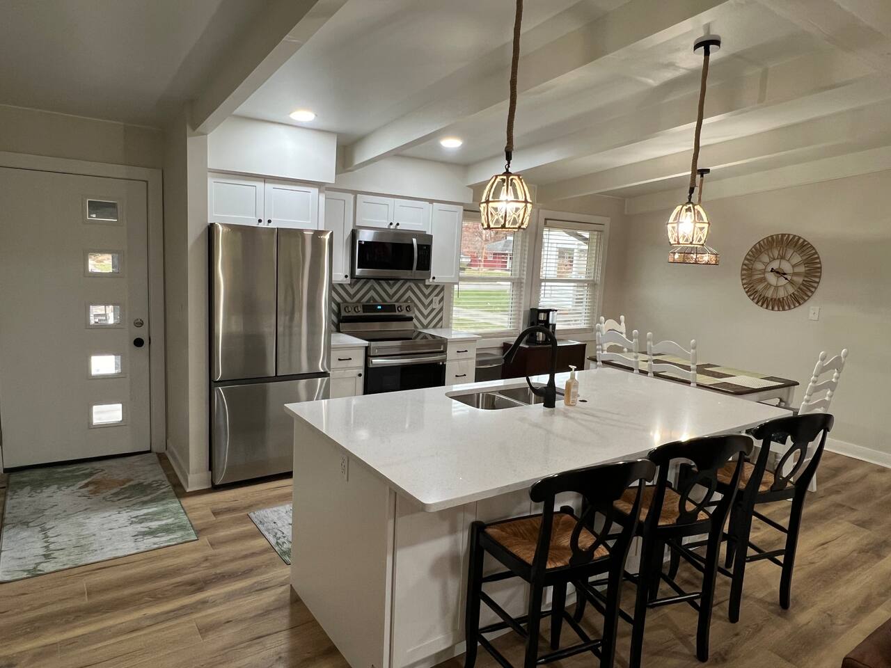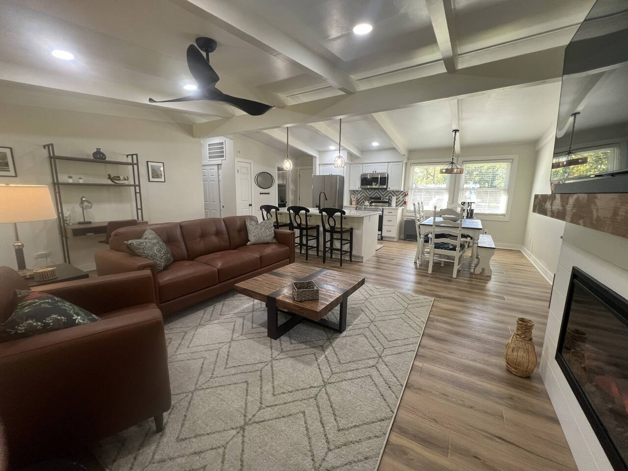 Easy one-story living. Welcome to our quiet and renovated home which is a few minutes’ walk to all Uptown Westerville and Otterbein University has to offer. Our spacious bedrooms and open concept living space is perfect for a group of traveling friends or a family looking for a peaceful stay. Relax in front of the fireplace, entertain in the open kitchen or enjoy the backyard from the spacious deck. Ample parking and easy access to the nearby Alum Creek Trail.